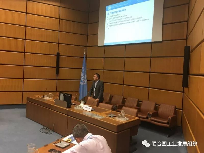 随后南南及三方合作高级协调员龚维希先生向代表团详细介绍了工发组织在南南及三方合作领域的具体实施机制。其中包括南南及三方合作的发展背景、对包容与可持续工业发展的贡献、工发组织在南南及三方合作领域的服务内容。同时全面对比了工发组织在过去与中国政府各部门签署的涉及“一带一路”内容的各类协议(备忘录或联合声明)的合作领域。